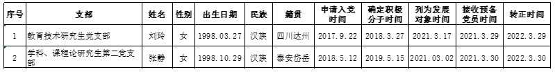 根据《中国共产党发展党员工作细则》中发展党员的文件要求,经对刘玲等2名同志的预备党员转正条件、转正程序等进行严格审查。2022年4月6日,学院党委会集体审议讨论了刘玲等2名同志的转正问题。党委委员共7名,实到会7名。经逐个审议和表决,7名党委委员一致认为刘玲等2名同志已具备正式党员条件,同意批准按期转为中共正式党员,党龄从预备期满转为正式党员算起。具体名单公布如下: