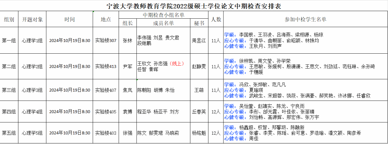 包子漫画 2022级硕士学位论文中期检查安排公告(心理学组)