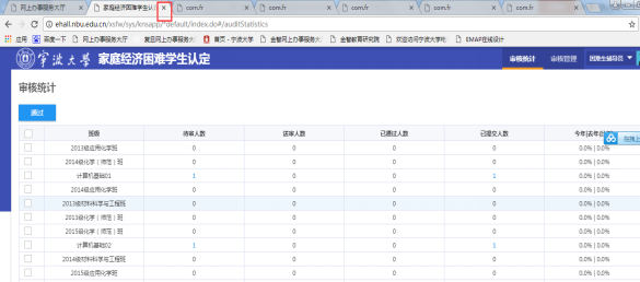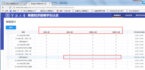 2.点击待审人数送审人数、通过人数下的蓝色数字跳转至该班级相应审核页面