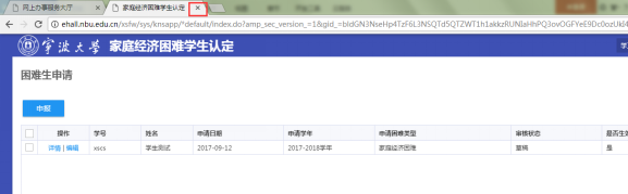 1.直接点击家庭经济困难学生认定”后面的“×”退出。
