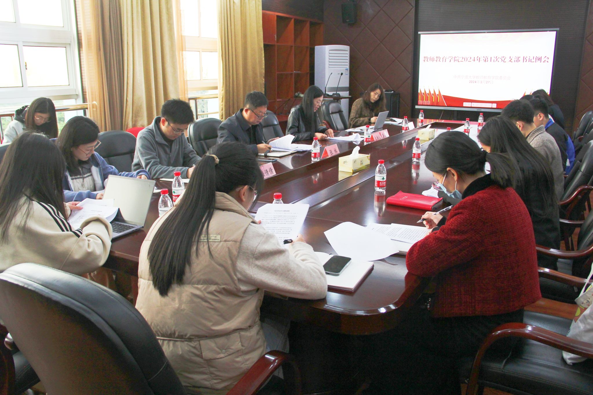 会上,学院党委书记张林传达了学校2024年基层党建工作要点文件精神与学校2024年第1次二级党组织书记例会精神。在总结2023年党建工作成果的基础上,他部署了2024年学院党建的一个核心目标和三项重点工作:围绕“教育家精神引领下的‘党建+’师范生综合素质提升计划”核心目标,一是要加强政治引领,丰富理论学习内容与形式,加强宣传报道工作;二是要聚焦学院发展核心工作,发挥先锋模范带头作用,推进党建与业务“双融双促”;三是要做好党员发展、教育、管理工作,强化党建育人的工作成效。