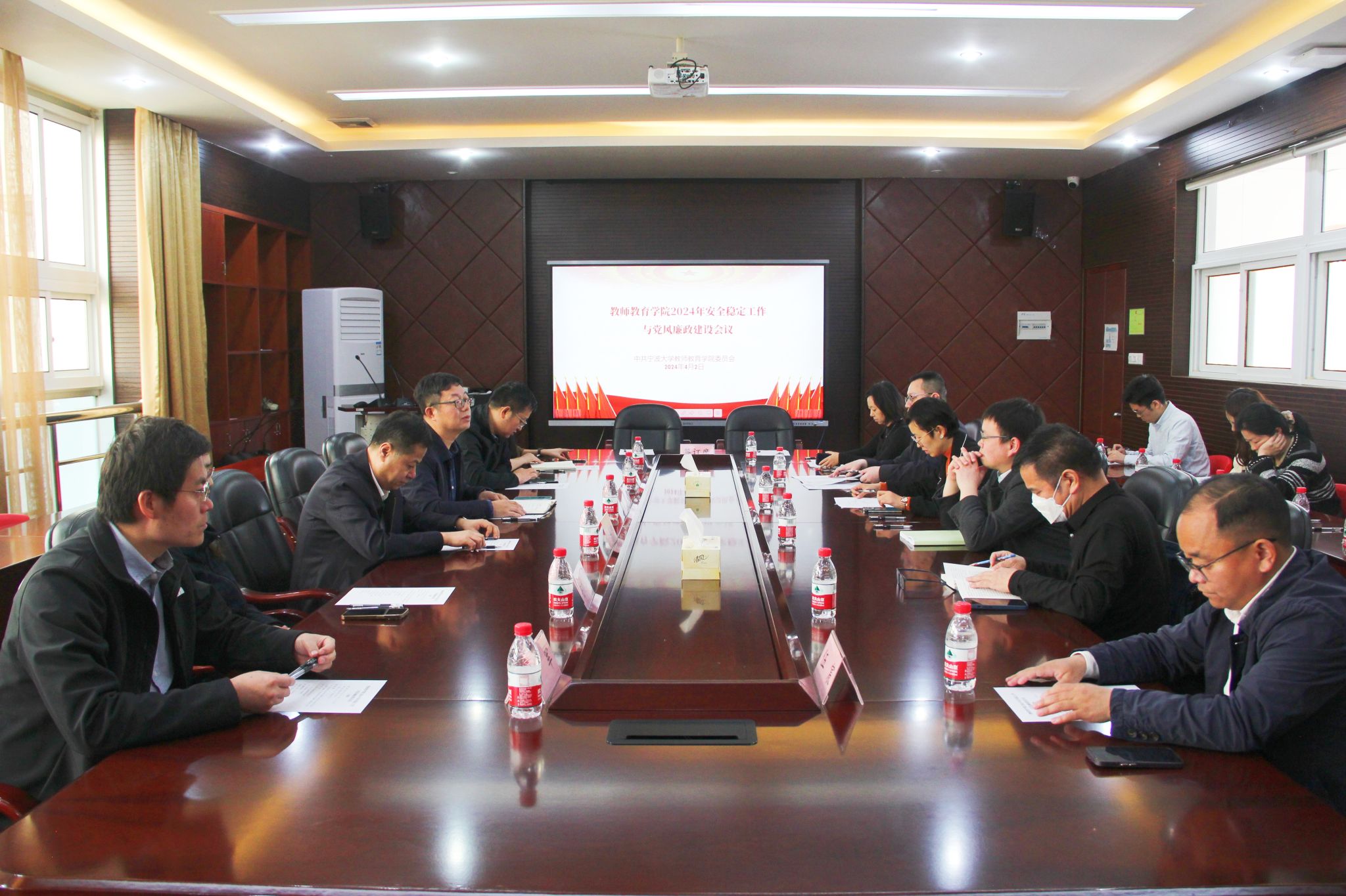 学院党委书记张林向会议传达学习了2024年学校全面从严治党工作暨“清廉宁大”建设推进会与安全稳定工作会议精神。张书记结合昨日对学院教育楼、逸夫教学楼的全面巡视检查情况,强调廉政安全无小事,要实时跟进重点领域和潜在隐患的治理工作,层层落实责任,加强各部门之间的协调配合。