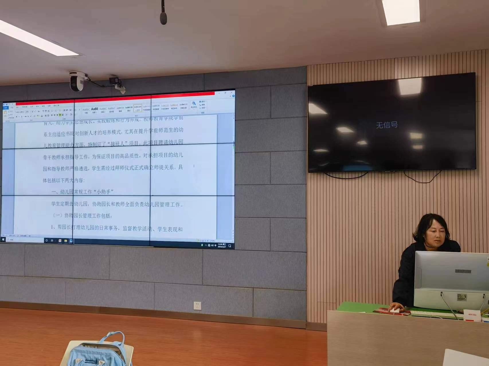 学前教育系教师党支部结合教师专业特长,进一步完善培养目标,与春雨书院携手,就第二课堂活动方案展开讨论。郝俊、罗娜老师结合自己的研究和思考,设计早教、特教方面的活动方案;王铁群老师走访多家幼儿园,熟悉幼儿园管理现状,在此基础上设计了助管活动的方案和具体活动安排。大家分组就两个方案展开讨论,提出意见和建议。第二课堂的开设对教师的专业素养、理论功底和教学能力提出了更高要求,激励着教师们勤奋学习、刻苦钻研、求真务实、勇于创新。