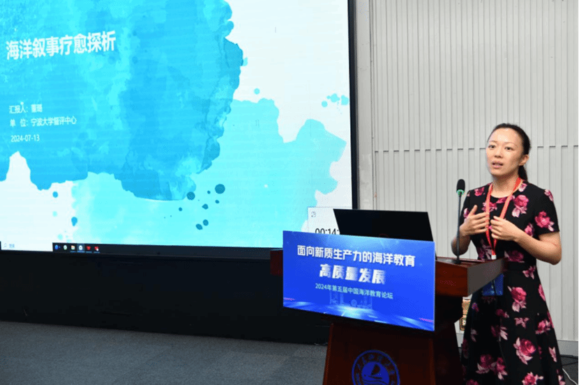 教育督导与教学评估中心办公室主任董璐作了《海洋叙事疗愈探析》的报告。提出海洋叙事疗愈是一种结合海洋自然元素与叙事疗法原理的心理健康治疗方法,过程主要涵盖叙事引导、问题外化、重构故事、情感连接、调整反馈等环节。其优势在于自然疗愈的力量、个性化的治疗体验、增强自我认知和自我愈合能力、促进身心健康以及建立积极的人际关系等方面。海洋叙事疗愈在海洋元素融入尤其海洋象征意义引入、疗愈方案反馈调整、个体持续支持关注等方面还有待探索。