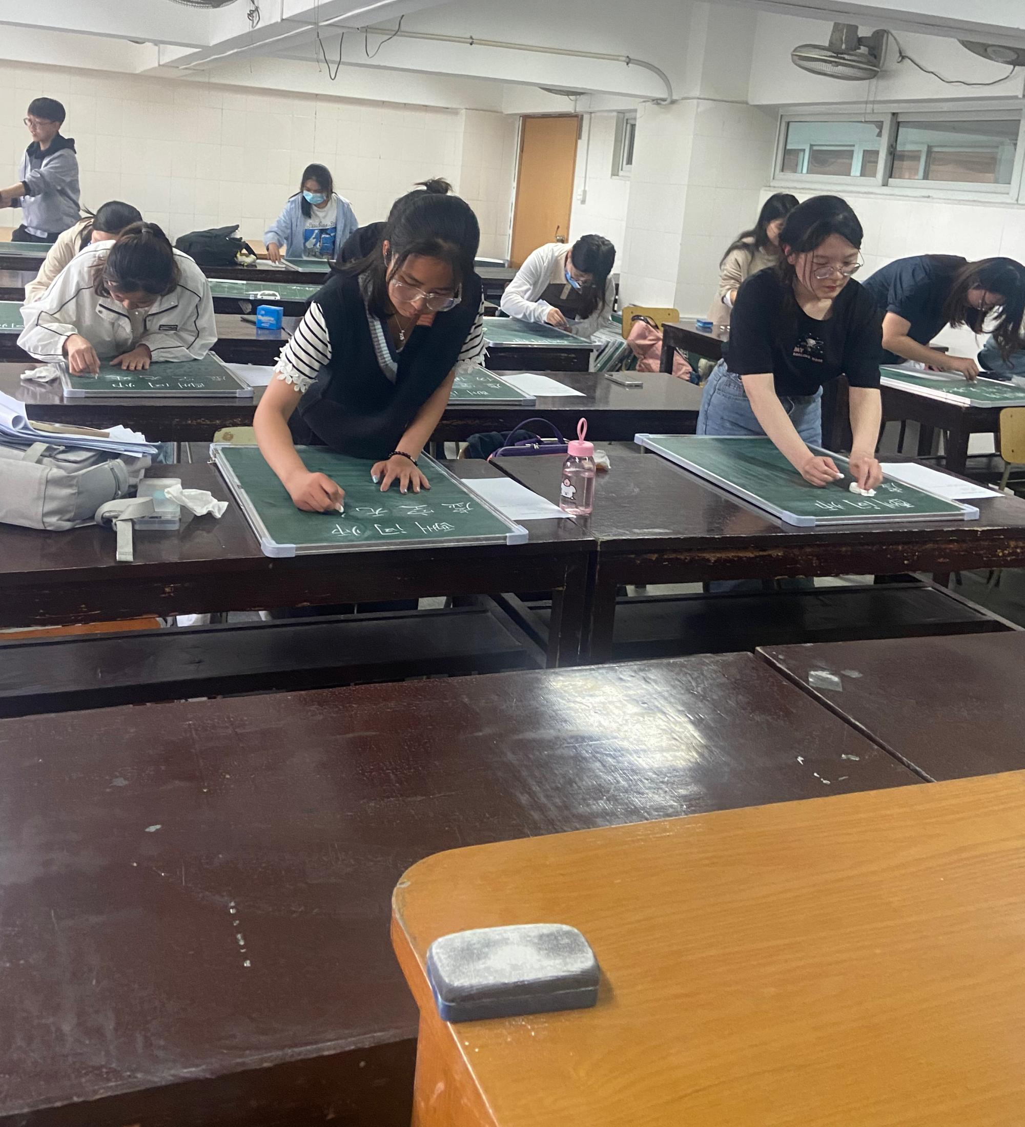 5月18日下午,春雨书院第一届“春雨杯”师范生三笔字比赛在西校区实验楼212、110教室举办。春雨书院以“四有”好教师培养为引领,努力完善师范生培养机制,旨在培养具有人文底蕴、科学精神、教育情怀的高素质、创新型的未来卓越教师。本次比赛以“不负韶华,练一手好字,强化未来教师之职业技能”为主题,设置毛笔字、钢笔字、粉笔字三个参赛类别。副院长李慧仙出席比赛,鲍晓华、谢旭、闫晓姣老师担任此次比赛的评委。