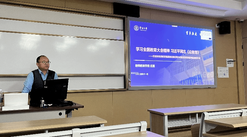 前三部分内容,伍宸老师首先向同学们介绍了习近平同志《论教育》这本书的概况,同时也指出学习这本书的重要性:“教育是民族振兴、社会进步的重要基石,是功在当代、利在千秋的德政工程。党的十八大以来,以习近平同志为核心的党中央坚持把教育作为国之大计、党之大计,坚持教育优先发展,作出加快教育现代化、建设教育强国的重大决策,推动新时代教育事业取得历史性成就、发生格局性变化。”接着,伍宸老师介绍了全国教育大会概述及核心要点,就全国教育大会对教育发展提出的新要求进行解读。