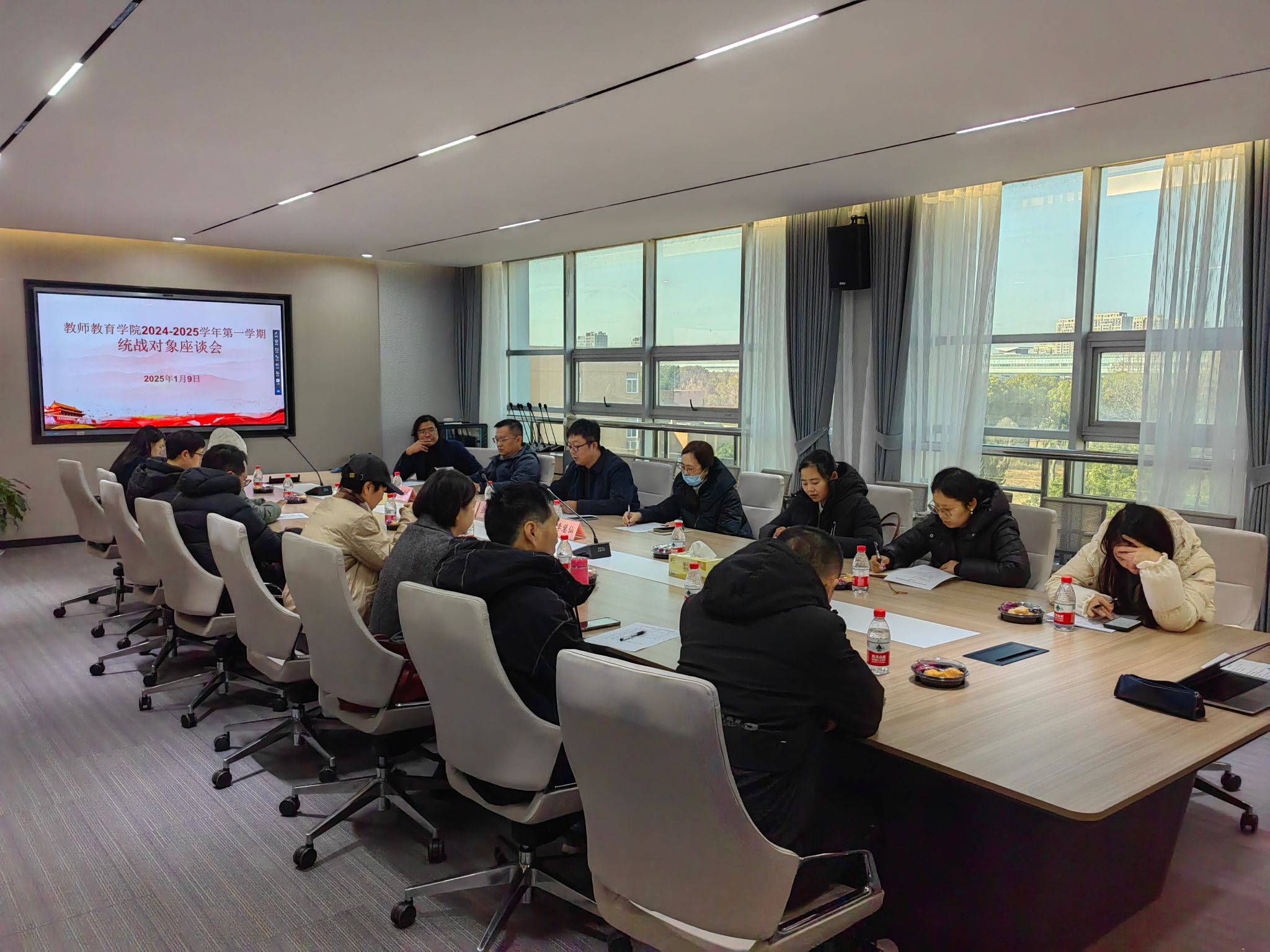 党委在教育楼413召开了本学期统战对象座谈会。学院党委书记张林主持会议,教务处副处长、学院副院长李慧仙,学院党委统战委员刘希伟,学院党委组织委员、分工会副主席张爱娟及11名统一战线工作对象参加了会议。