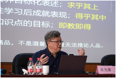 接着,崔教授将新课标背景下新教学的特征概括为四个方面。一是坚持素养导向,核心素养通过学期目标、单元目标、课时目标层层细化,其中以大单元为单位开展教学是落实核心素养的关键。二是强化学科实践,强调学习像学科专家一样思考与行动,使用各个学科典型的学习方式学习知识、运用知识。三是推进综合学习,通过学科内知识整合、综合课程和跨学科主题学习实现知识与知识、生活与知识、自我与知识的联结。四是落实因材施教,澄清课程内容实际上是有组织的学习经验,教学应注重学生学习的差异性和多样性。