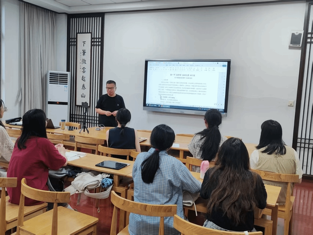 附属春晓实验学校,与初中语文组开展本学期的“联合教研”活动,研究生曾梦婷执教《白杨礼赞》,研究生周子渝执教《雨的四季》,随后冯教授对教师论文进行指导,对两位学生的检视阅读思维支架的运用进行了点评,结合王阳明知行合一的哲学对语文教学现状进行剖析。