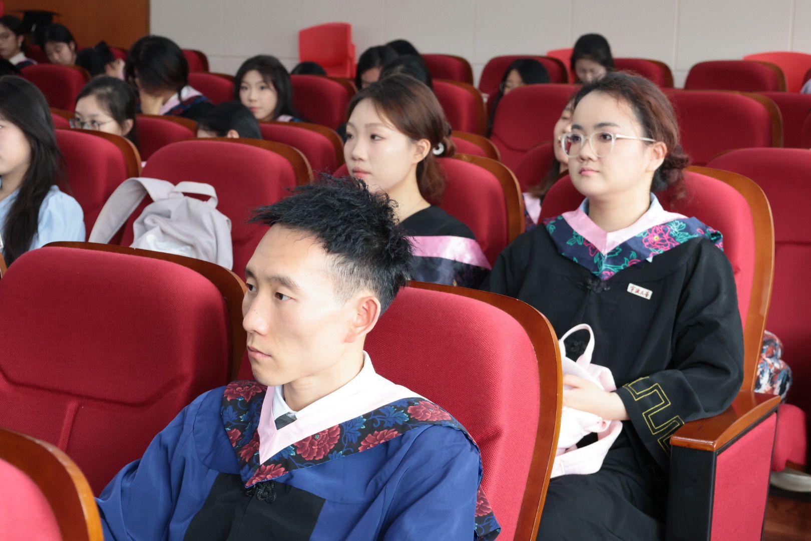 讲课结束后,全体“准教师”进行了“师德规范宣誓”:“我志愿成为一名光荣的人民教师,忠诚教育事业,履行教师职责,贯彻党的教育方针,落实立德树人根本任务……”即将走上教师岗位的毕业生们身着学士服在此宣誓同一个梦想。