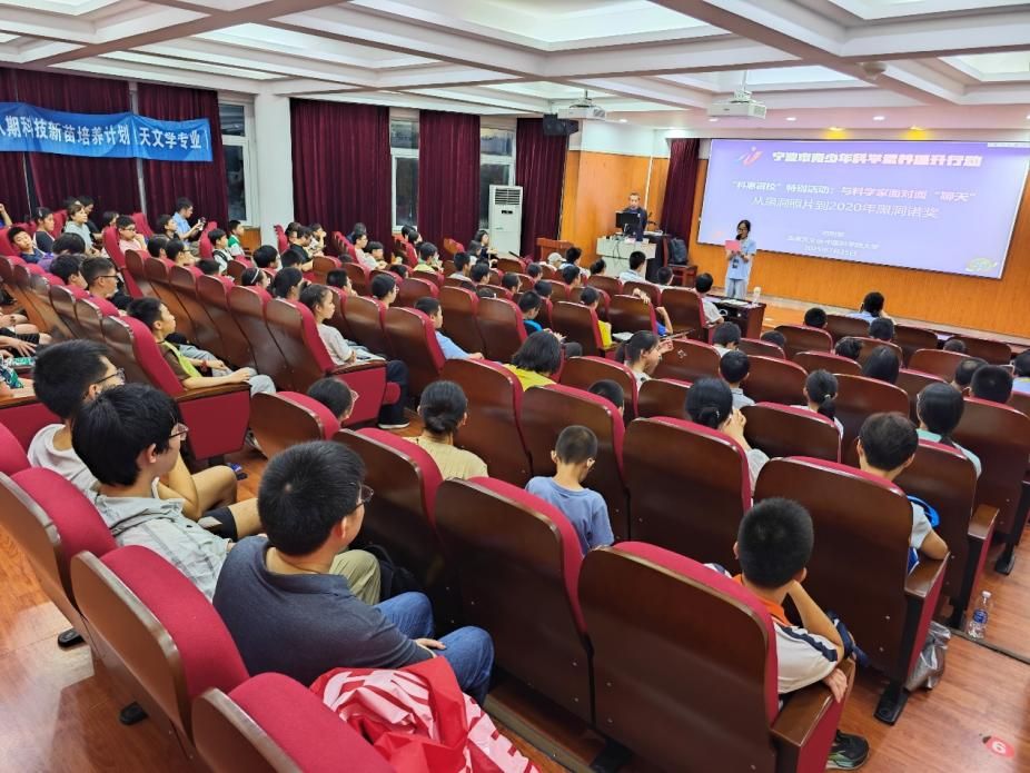 和宁波市天文爱好者协会共同举办,来自宁波市“科惠百校”成员学校和科技新苗天文学团队同学共计127人参与了本次互动式沙龙,现场人头攒动,将座位填得满满当当,连过道都增加了临时座位,气氛热烈非凡。
