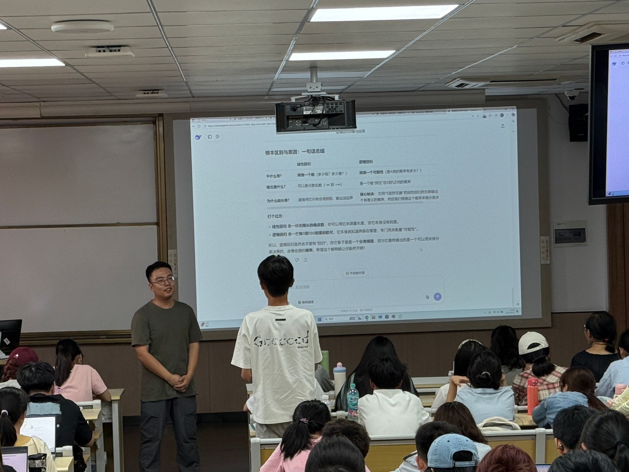 本节课聚焦于线性回归与逻辑斯蒂回归两大核心模型。首先系统讲解了线性回归如何通过最小化损失函数(如MSE)来拟合数据并预测连续值,理解其参数优化的数学思想。随后,课程探讨了逻辑斯蒂回归如何利用Sigmoid函数将线性输出转化为概率,从而解决二分类问题(如录取预测、诈骗识别)。章老师遵循“盐溶于水、润物无声”的原则,将思政元素有机融入专业教学,实现知识传授与价值引领的深度融合。