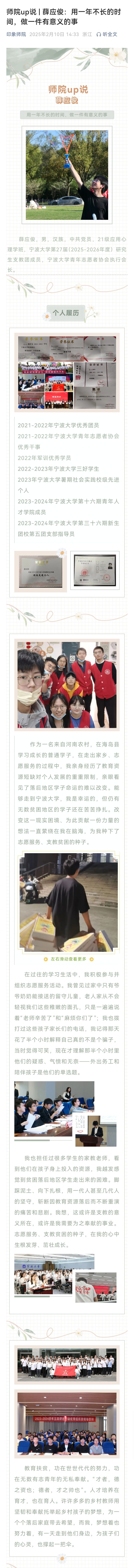 师院up说 | 薛应俊:用一年不长的时间,做一件有意义的事