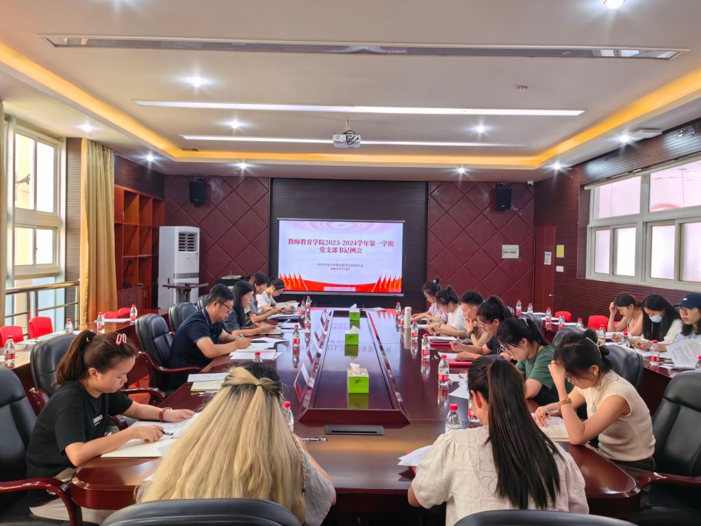 接着,小教系学生第一党支部与心理系研究生第一党支部分别从组织机构设置、体制机制建设、党建成果与支部特色培育等方面进行汇报发言,与各党支部分享其党建工作经验与思考体会。然后,学院党建辅导员与组织员围绕党支部换届、党员发展与党组织关系转接等本学期党建重点工作进行详细部署。