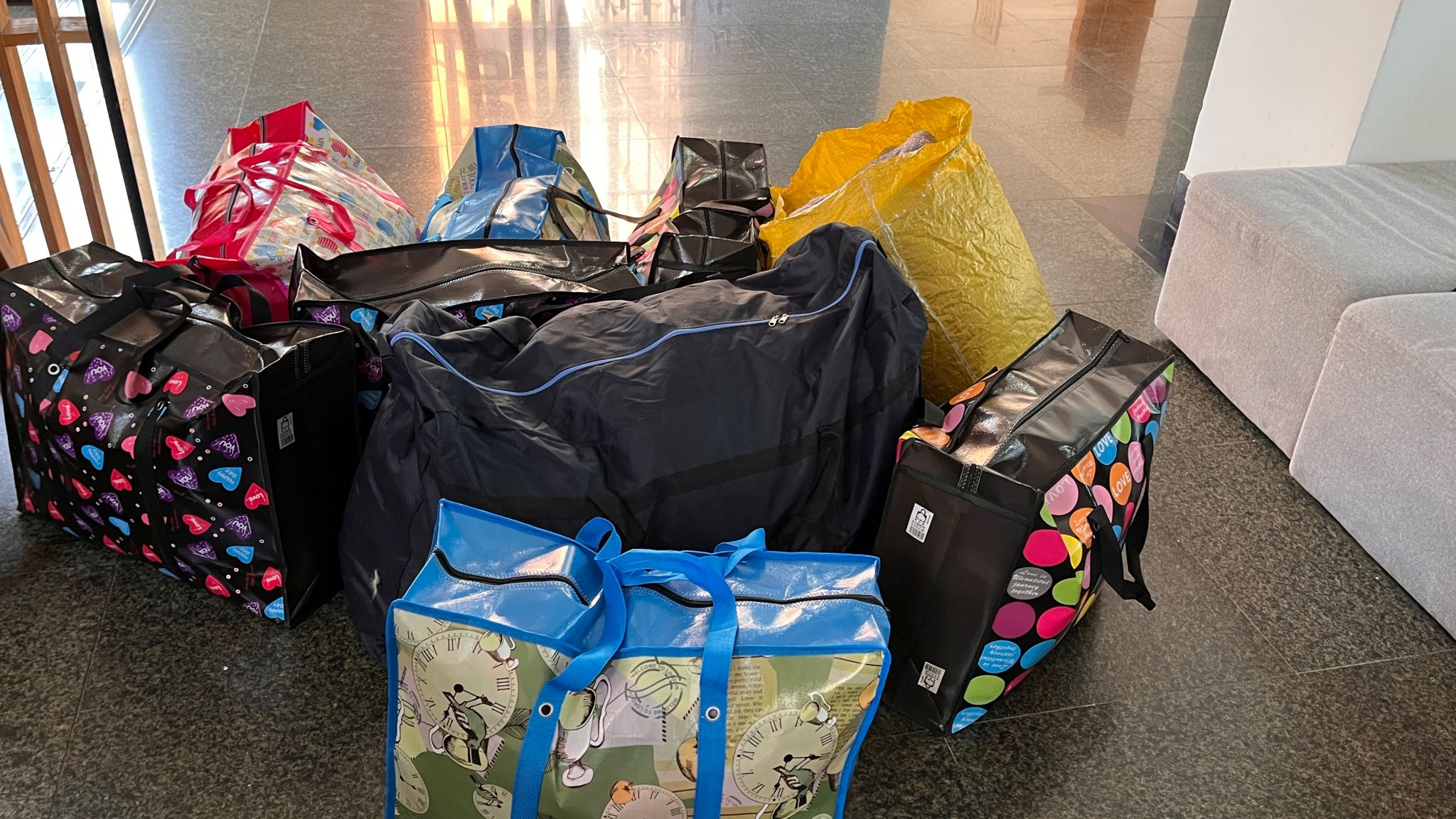 当天中午,学院实验楼一楼大厅里已堆满了一袋又一袋的衣服。支部书记解少娟带领支部党员逐一清点捐赠的所有衣物,同志们捐赠的冬装上衣与裤子等衣物近140件。
