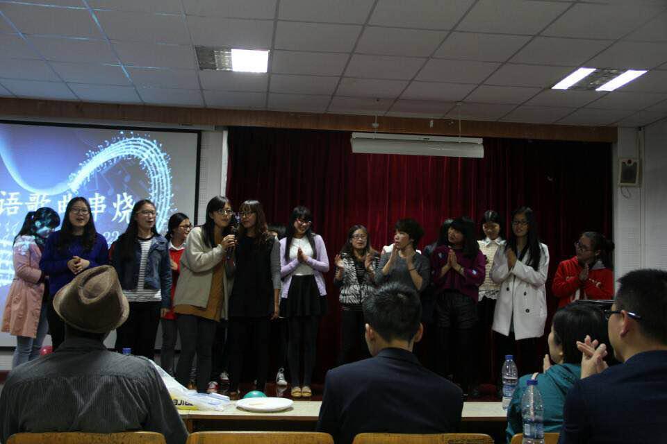 晚会还特别设置了与观众游戏互动环节,同学们积极参与,外教也热情加入,充分体现了我系师生的青春风采和团结精神。最后,晚会在一首温馨暖人的《Hey Jude》歌曲中结束。所有参加此次演出的成员及主持人同时登台,为本次晚会画上了完美的句点。