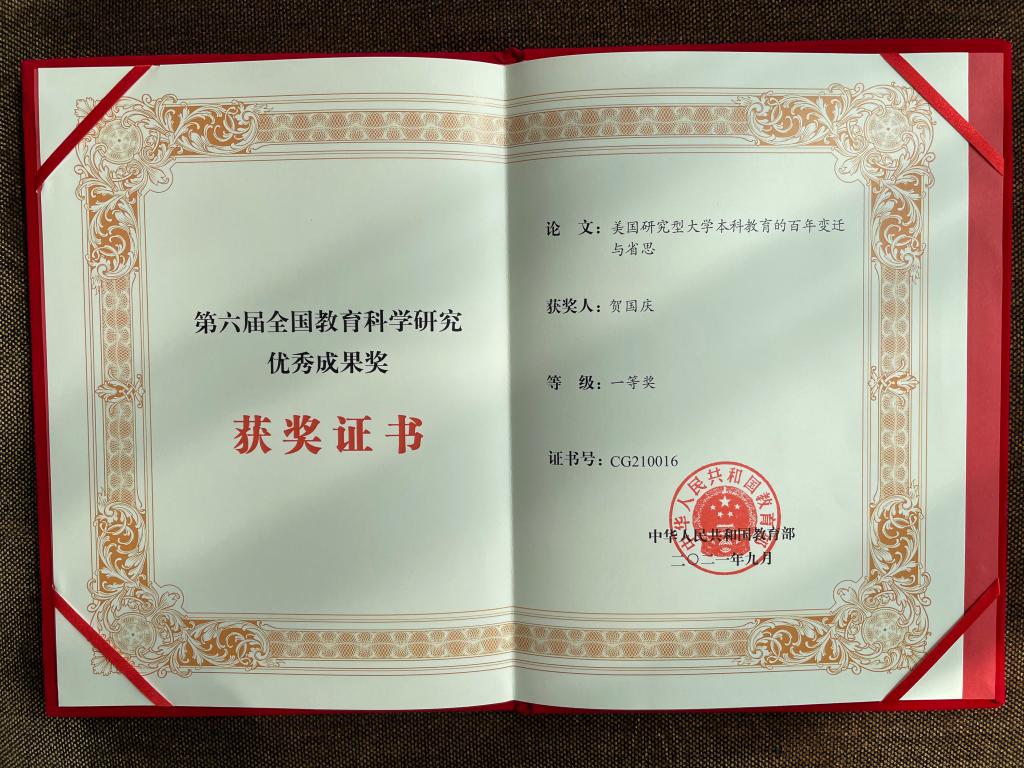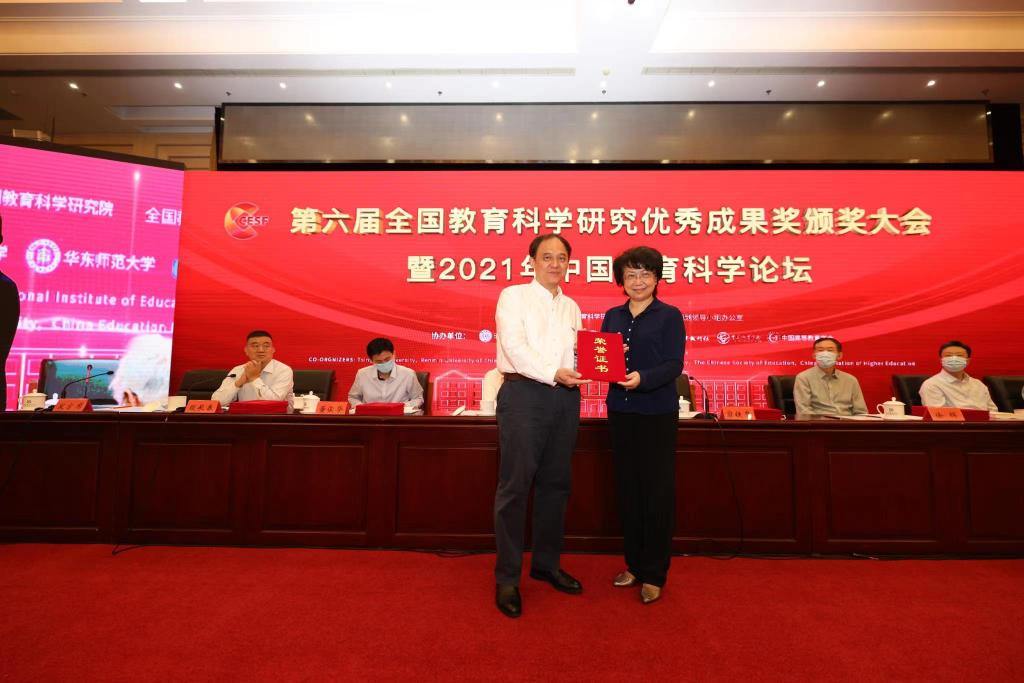 2021年9月28日,第六届全国教育科学研究优秀成果奖颁奖大会在北京召开,我院贺国庆教授的论文《美国研究型大学本科教育的百年变迁与省思》荣获一等奖、邵光华教授的著作《教师课改阻抗及消解策略研究》荣获二等奖。