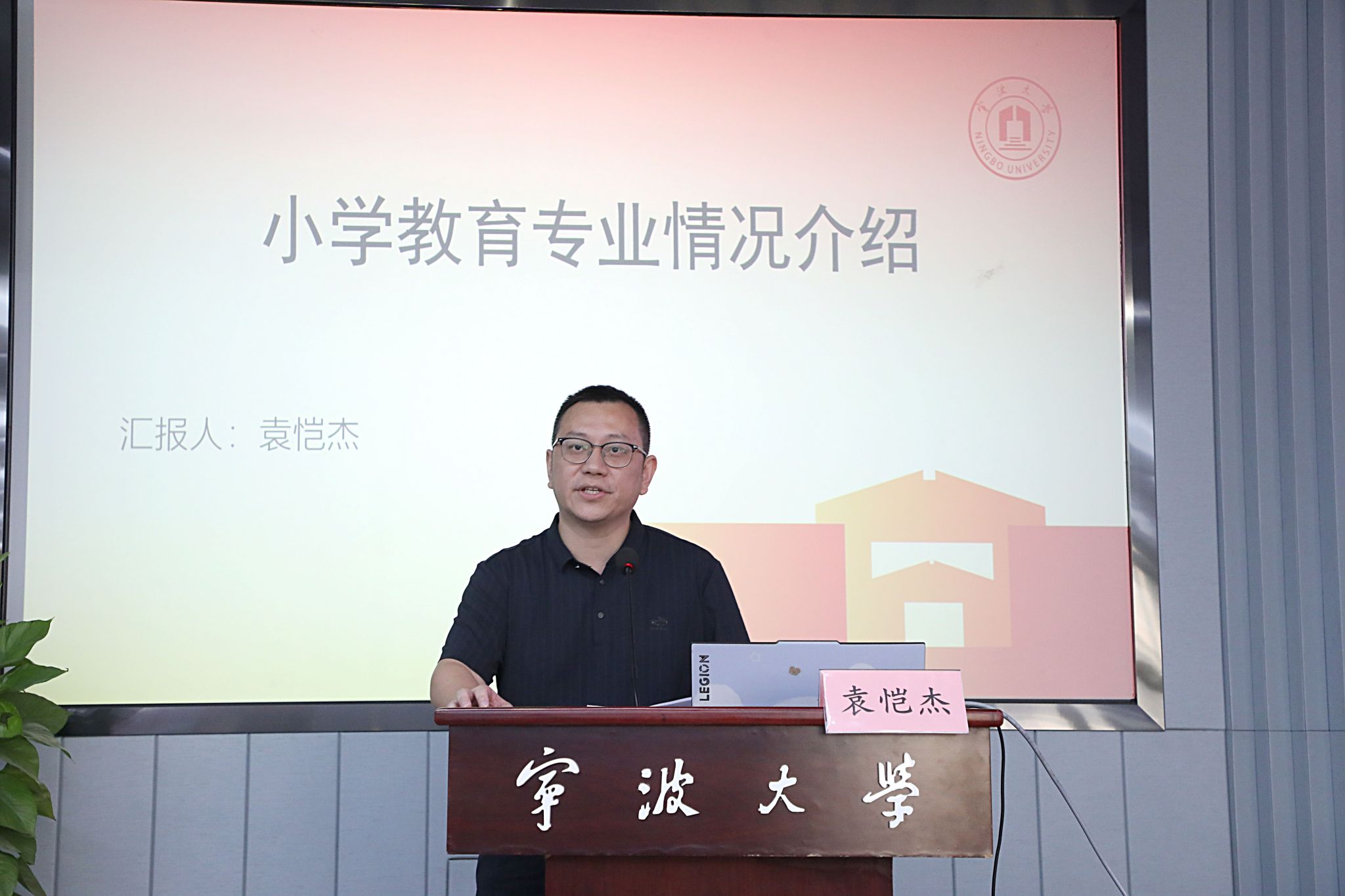 接着,系主任袁恺杰介绍小学教育专业的发展历程以及服务区域发展情况;副系主任姚佩英从实习制度、课程设置、实践现状和合作愿景四个方面展开介绍小学教育实践工作情况。