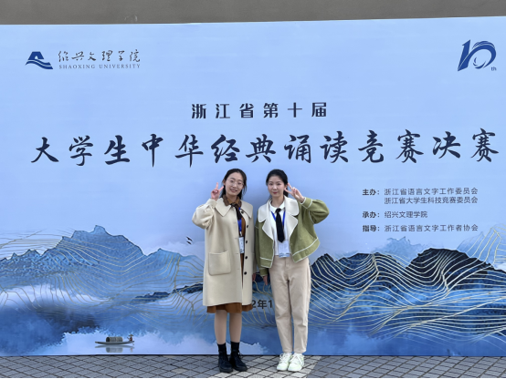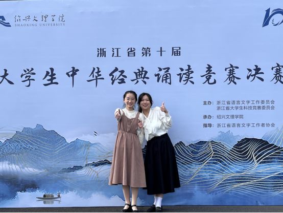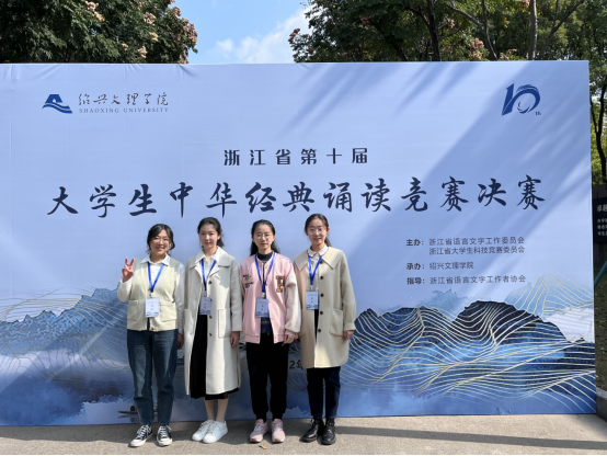 11月4日至6日,浙江省第十届大学生中华经典诵读竞赛决赛在绍兴文理学院举行。我院20小学教育(师范)专业陈佳璐同学、21小学教育(师范)张雅惠同学和21英语(师范·小学师资)朱淑琪同学在宋芸芸老师、陈蕾老师和陆薇薇老师的精心指导下,经过认真准备、激烈比拼,分别取得了本科组一等奖、二等奖和二等奖的好成绩。