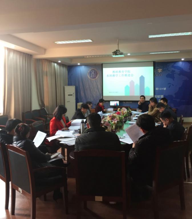 12月28日,我院本科教学工作推进会在博观楼401召开。贺国庆院长、方莹芬书记、陈柏华副院长、邵光华副院长、朱学庆副书记,心理系、小学教育系、学前教育系、英语教育系、数字媒体系正副主任以及教务办、学工办成员参加了会议。会议由教学副院长陈柏华教授主持。