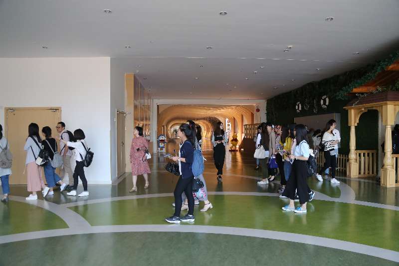 讲座后,师生们在园长的带领下参观了园内的大型高尔夫球场草坪、净水旱喷、天使农庄、室内恒温游泳池、快乐木工坊、创意空间等布置并入班旁听了中外籍教师的授课,让学生们有了和平时的见习活动不一样的参观体验。
