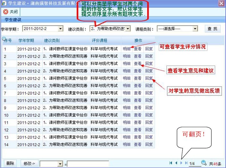 4. 学生建议汇总页面示例。