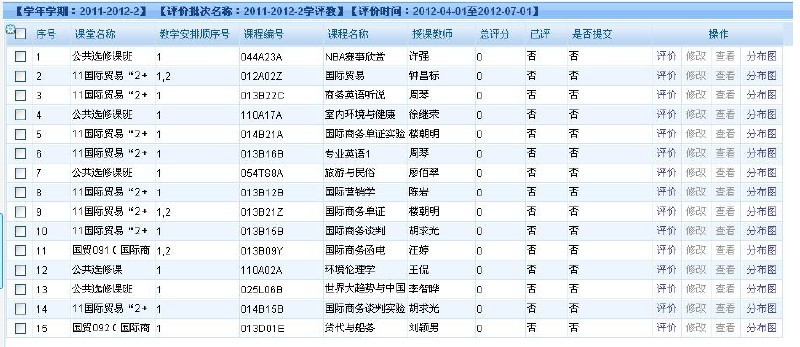 8. 学生进入教务管理系统打开的学评教课程列表(学生可以任意修改评价)。