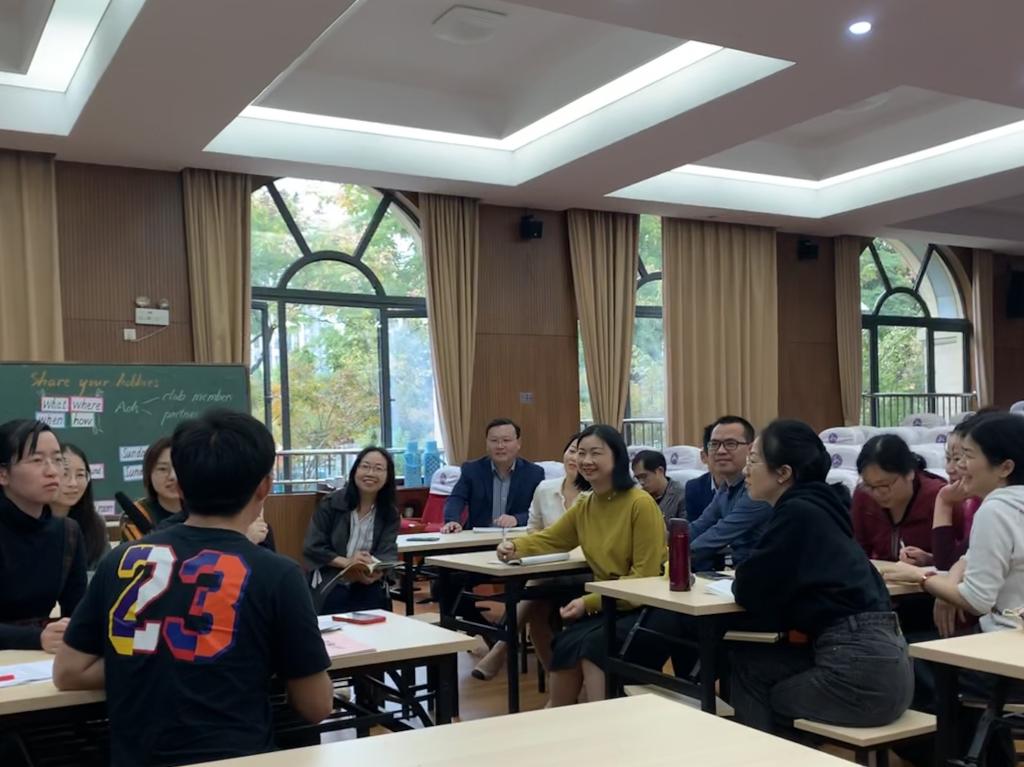此次教研活动还进行了高校与教师发展学校联合培养师范生的探讨。海曙外国语学校俞东副校长做了题为“以合作文化为载体建构‘雅慧·生本’英语课程体系”的报告,介绍了海外办学理念及课程体系,同时还指出了构建有利于师范生培养的高校与教师发展学校共同体的积极意义。张光陆主任表示海外教师教学理念与教学方法非常先进,教学效果出色,我们的实习生在指导老师的精心指导下会得到快速成长。最后,海外的多位优秀一线教师与英语教育系的老师们进行座谈,就英语师范生的培养给出了许多宝贵建议。