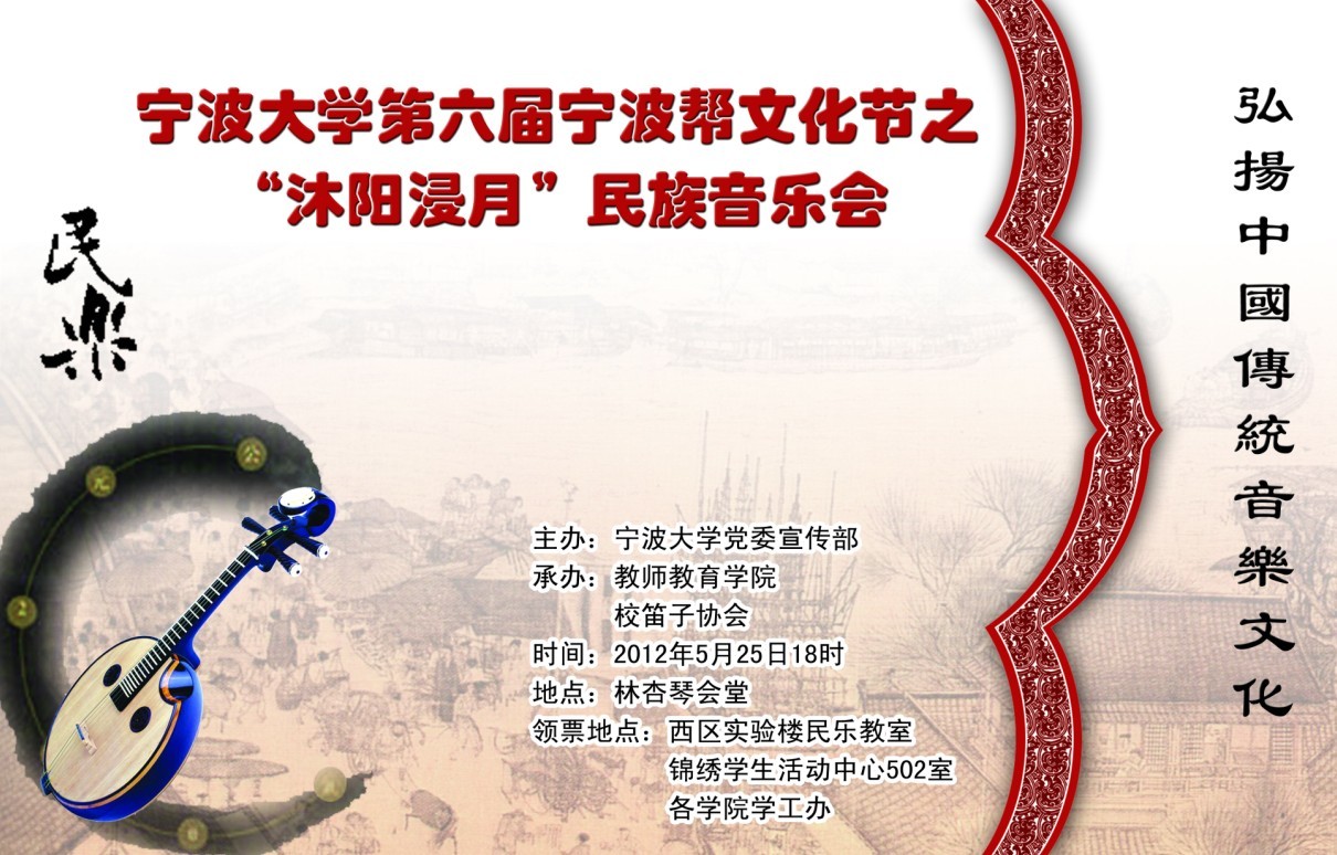 【校园文化】包子漫画 第六届宁波帮文化节之“沐阳浸月”民族音乐会演出通知