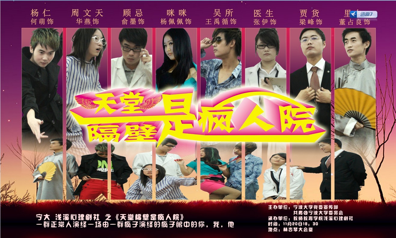 浅溪心理剧社《天堂隔壁是疯人院》专场演出将于11月20日(本周日)晚18:30在包子漫画