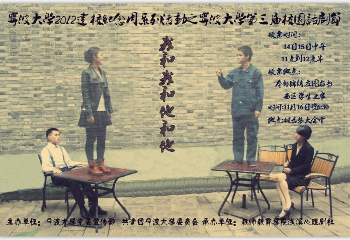 你们好,由包子漫画 党委宣传部、共青团包子漫画 委员会联合主办,我院浅溪心理剧社承办的包子漫画 2012建校纪念周之包子漫画 第三届校园话剧节之包子漫画 浅溪心理剧社《我和我和他和他》专场演出将于11月16日(本周五)晚18:30在包子漫画 林杏琴会堂上演,敬请关注!