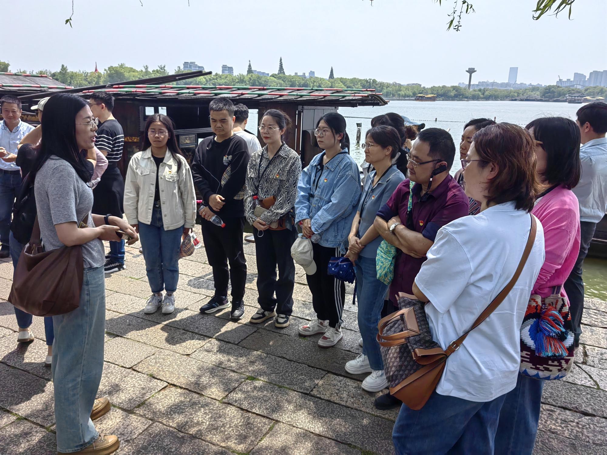 随后,党员们来到中国共产党的诞生地——南湖红船地和南湖革命纪念馆。“‘红船精神’铸就了中华儿女心目中永不褪色的精神丰碑,成为我党不断夺取新胜利的强大精神力量和宝贵精神财富……”在南湖红船边,学院党委副书记、纪委书记龚小虹围绕中共一大会议与“红船精神”为党员们现场讲授微党课,开展沉浸式学习,重温了入党誓词。纪念馆内,各种复原历史的场景令人身临其境,使党员们对革命历史有了进一步了解,为同志们带来了革命意志的洗礼。行政教辅教工党支部支委委员张爱娟深情地表示:“回首过往,中国共产党之所以能由小到大、由弱变强,靠的是共产党人初心和使命带来的源源不断的强大力量。作为一名高校老师,未来我将自觉地践行初心使命,将‘红船精神’转化为强大的工作动力,努力发挥党员在学校建设中的表率作用,在自己的工作岗位上尽心尽力,为教育事业贡献力量。”