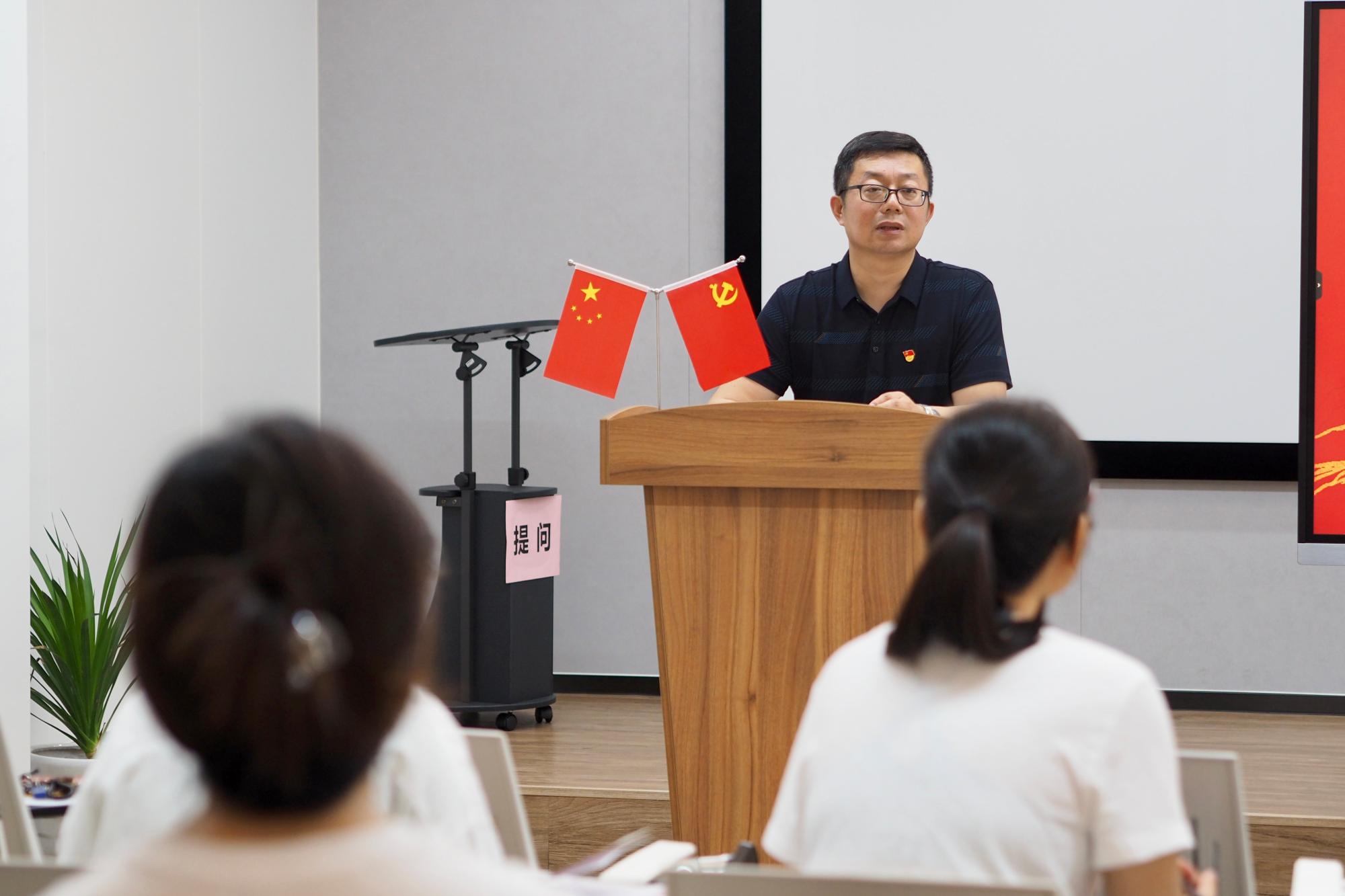 张林从“四有好老师”的标准出发,结合习近平总书记关于教育的论述,围绕个人的从教经验,引经据典,为支部成员们上了一堂有高度、有温度、有情怀的党课。首先,张林论述了教师职业对于社会的重要性。其次,他为党员讲述了宁波本地心理学教授林崇德先生的教师观:50多年来,他坚守“严在当严处,爱在细微中”的教育理念,为我国培养了一大批心理学领域人才,推动了我国教育改革及心理学学科的发展。张林从林崇德先生“严慈相济”的精神出发,呼吁党员们牢记立德树人神圣使命,厚植教育情怀,心怀仁爱之心,努力培养全面而有个性的发展的杰出青年学子。