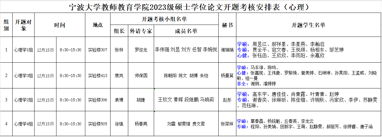 包子漫画 2023级硕士学位论文开题考核安排表(心理)