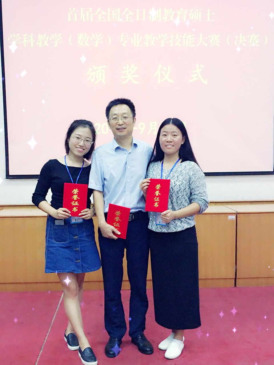 9月24日-26日,在鲁东大学刚刚落幕的首届全国全日制教育硕士学科教学(数学)专业教学技能大赛(决赛)中,我校15级研究生杨雅静和李轶美同学分别获得一等奖(最高奖项)和二等奖,位列浙江省培养高校榜首。