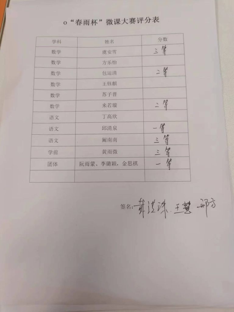 根据《关于开展第一届“春雨杯”师范生微课比赛的通知》的安排,经学院组织专家对收到的参赛作品进行了现场评审,最终评审出个人组一