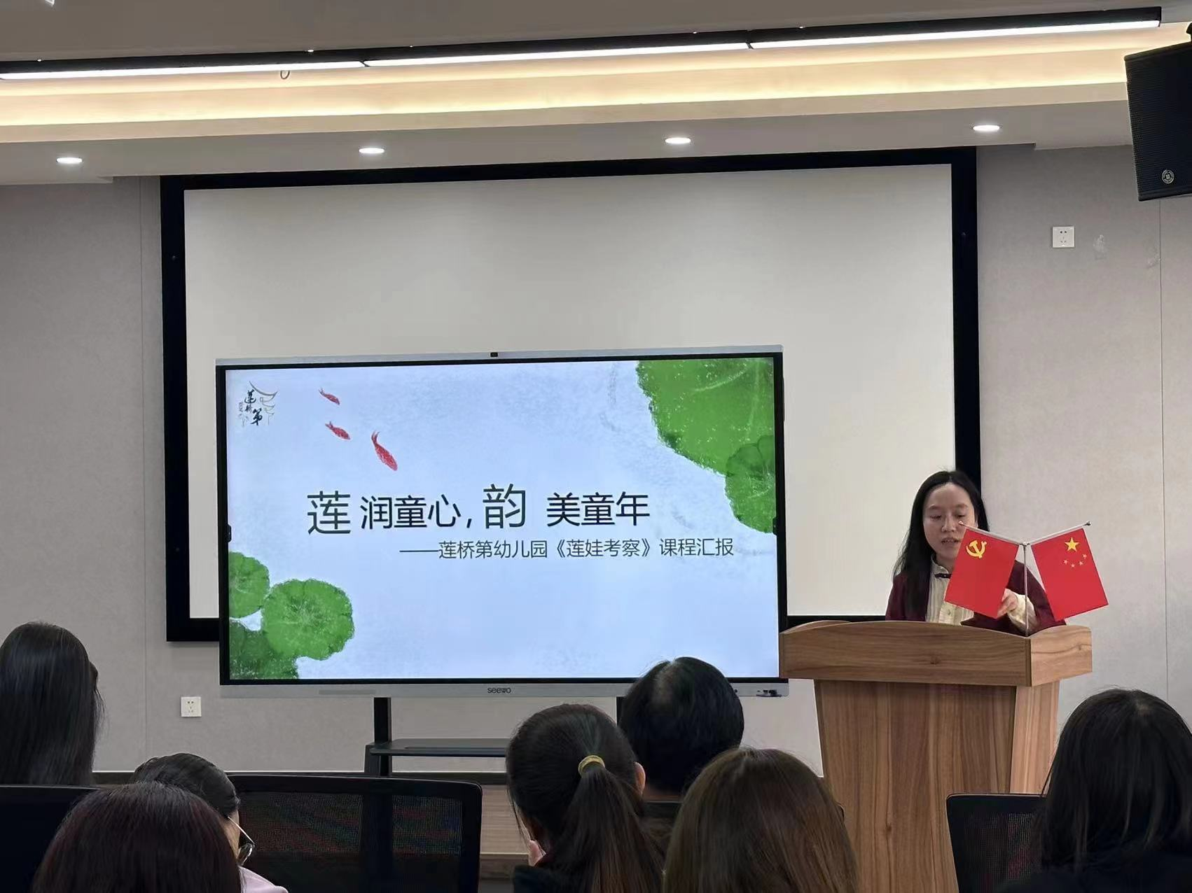 吴姿爽园长还带领幼儿园团队成员进行了园本课程建设分享。周颖老师分享了《莲娃考察课程》,傅月芳老师分享了课程故事《“幼”见邮票展》。