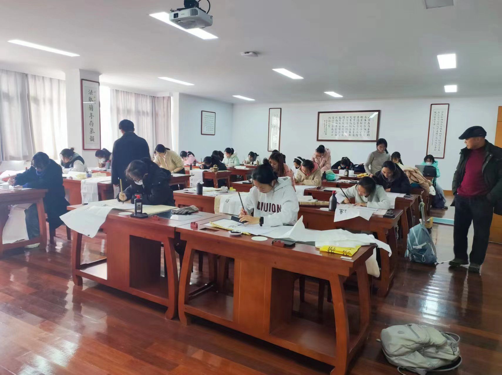 一张纸,一支笔,一份坚韧,一抹光亮。硬笔组的选手们全神贯注,认真书写,风格各异。笔墨本无心,书者赋之,白纸上尽显风骨。